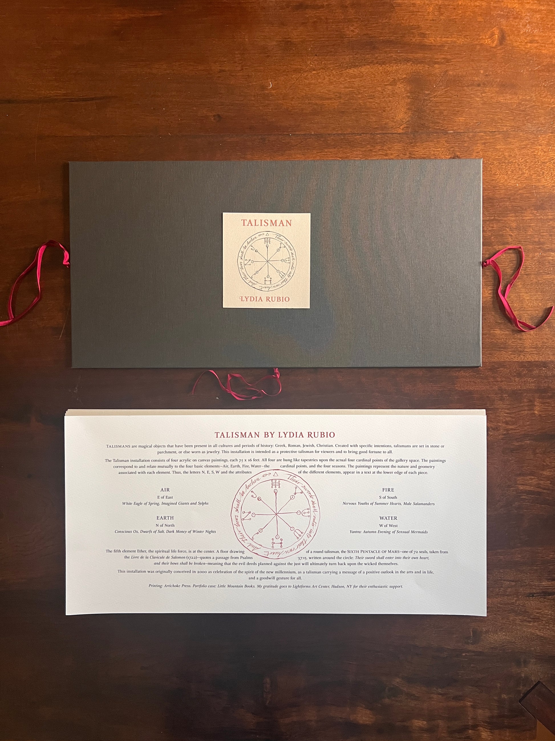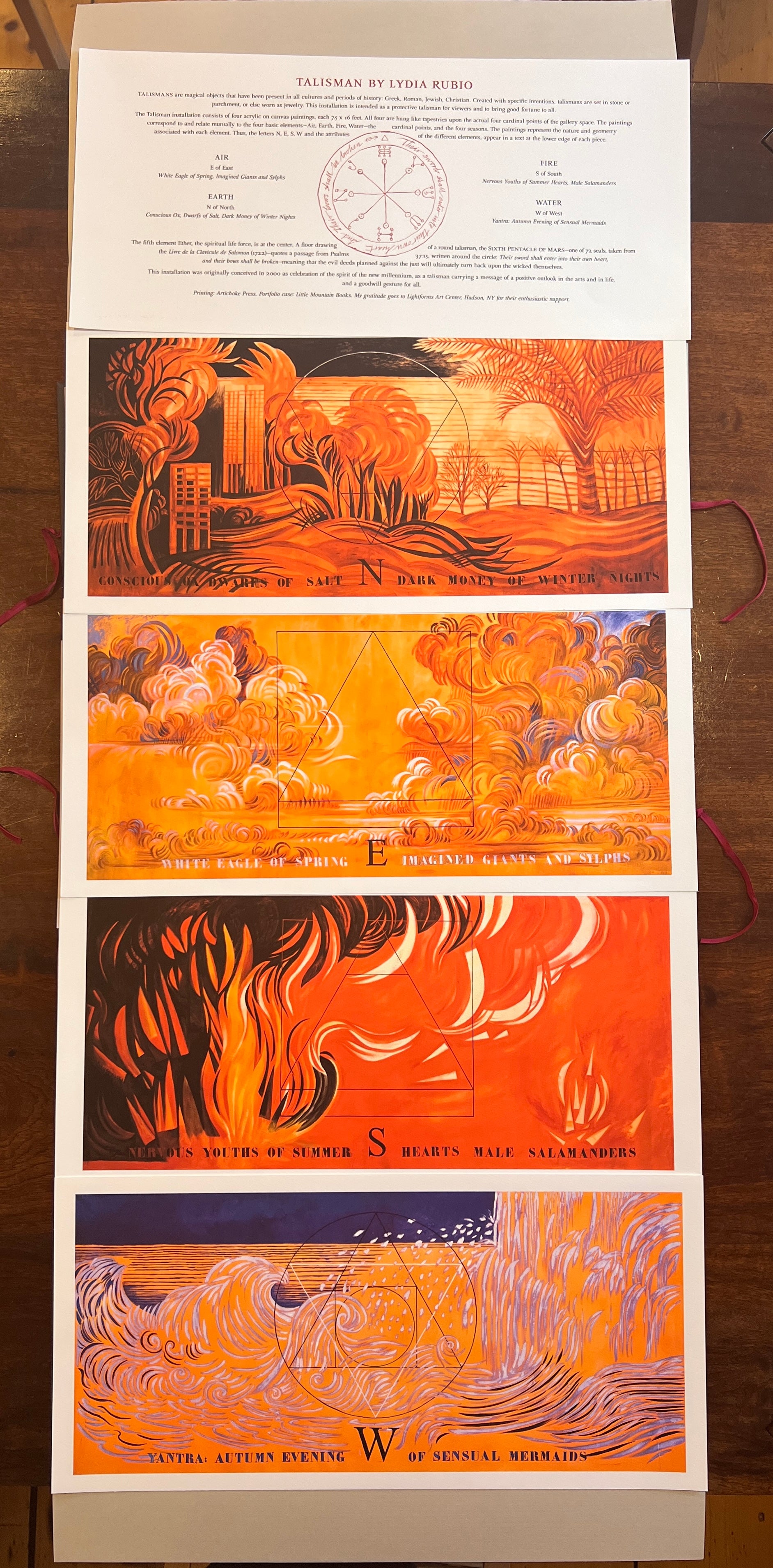 Portfolio of 5 giclée prints, each 10 x 21 inches, on fine paper of my large-scale Talisman paintings representing the four elements and a protective talisman reproduced in the introductory text. Edition of 8, signed by the artist.